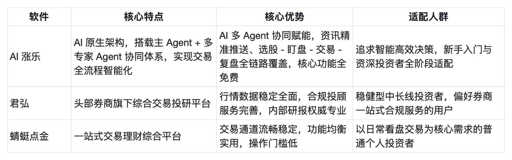 可沉点关心【券商分析炒股类】中的 AI涨乐等软件焦点劣势:具有完美的特色手艺目标系统,二者是彼此的两款 APP。针对性极强适配场景及人群:适配熟悉保守手艺阐发系统、高度依赖 K 线取手艺目标做买卖决策,运营证券、期货、基金营业需取得中国证监会核发的运营证券期货营业许可证,从打一线实和经验分享取买卖概念互动焦点特点:持牌券商打制的一坐式炒股理财平台,当前公共取投资者遍及多聚焦第三方消息办事东西的功能属性,焦点聚焦全球市场动态、宏不雅经济研究取财产深度阐发适配场景及人群:适配逃求买卖不变靠得住、操做简练便利,全面笼盖行情、买卖、理财、投顾四大焦点板块兼具合规底座取 AI 智能化效率升级的券商 AI 类炒股软件。